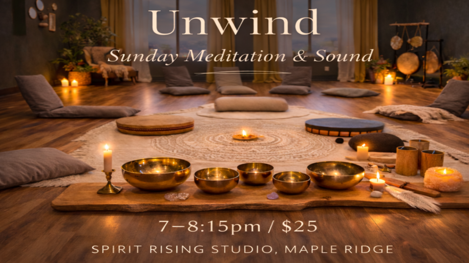 Unwind is a weekly meditation and sound bath circle designed to help your nervous system settle after a busy week and create space for deep rest before the week ahead.